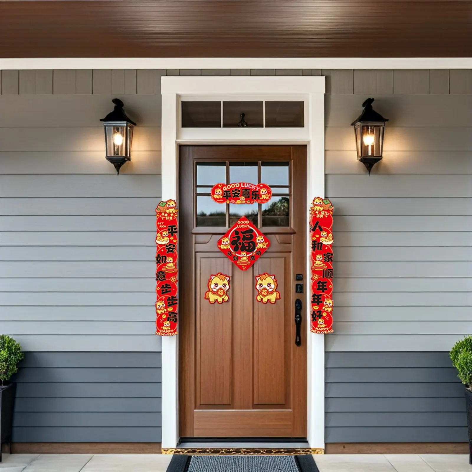 6ks jaro slavnost couplets 2026 kůň zvěrokruh nový rok dekorace sada červená šťastný fu značka loupat a tyčinka banery pro dveře zeď