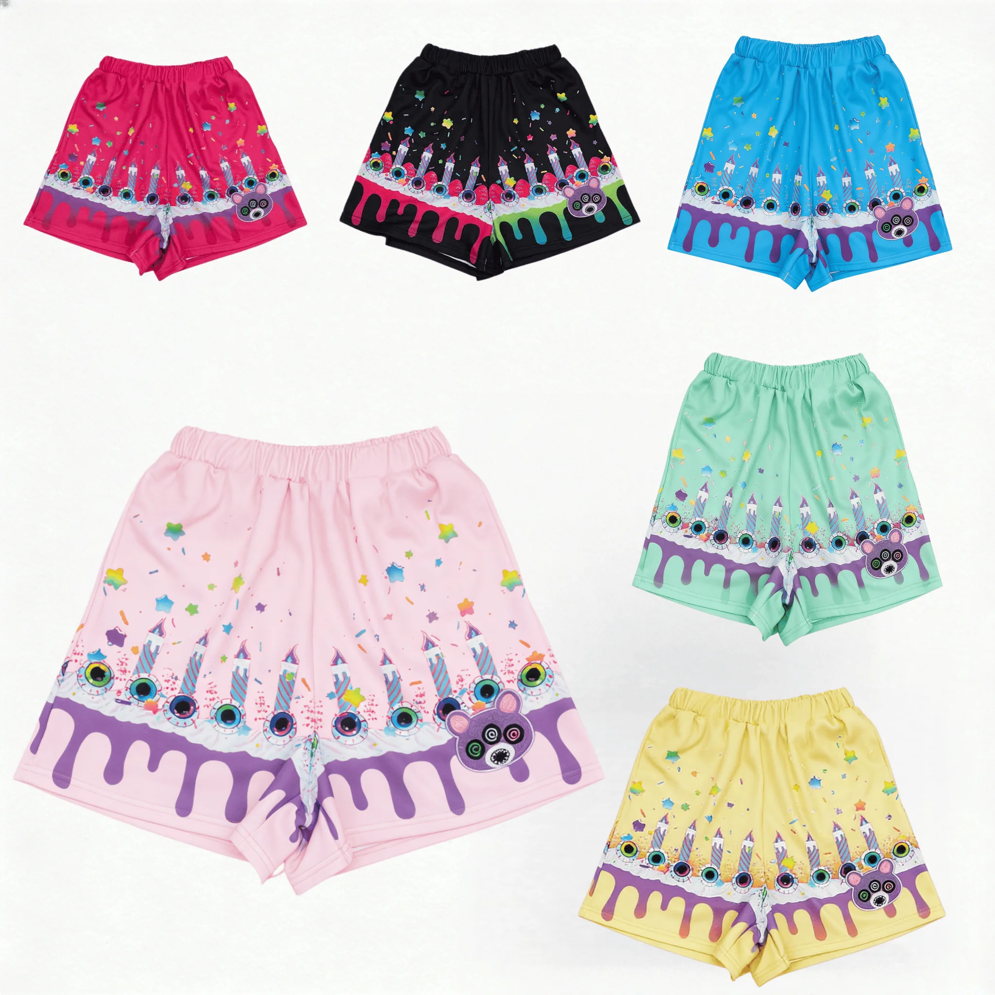 2026 léto macaron-colored dort tisk sladké a roztomilá dívčí ulice móda Y2K plus-size volné pláž šortky adults/kids