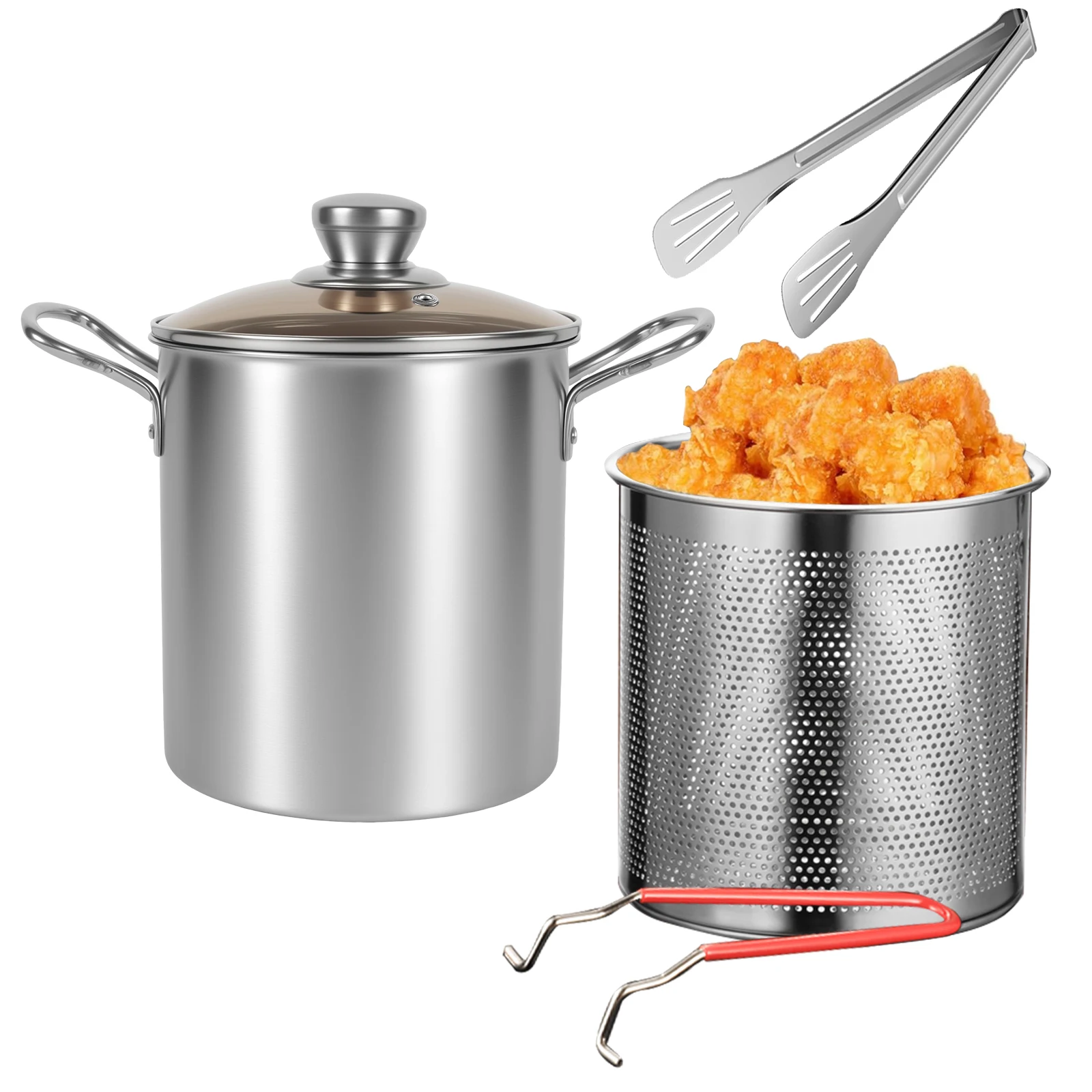 Hluboká smažák hrnec 304 nerez ocel smažit hrnec s koš a kryt jídlo grade hluboká smažák multifunkční hluboká fritovací hrnec pro fritovací