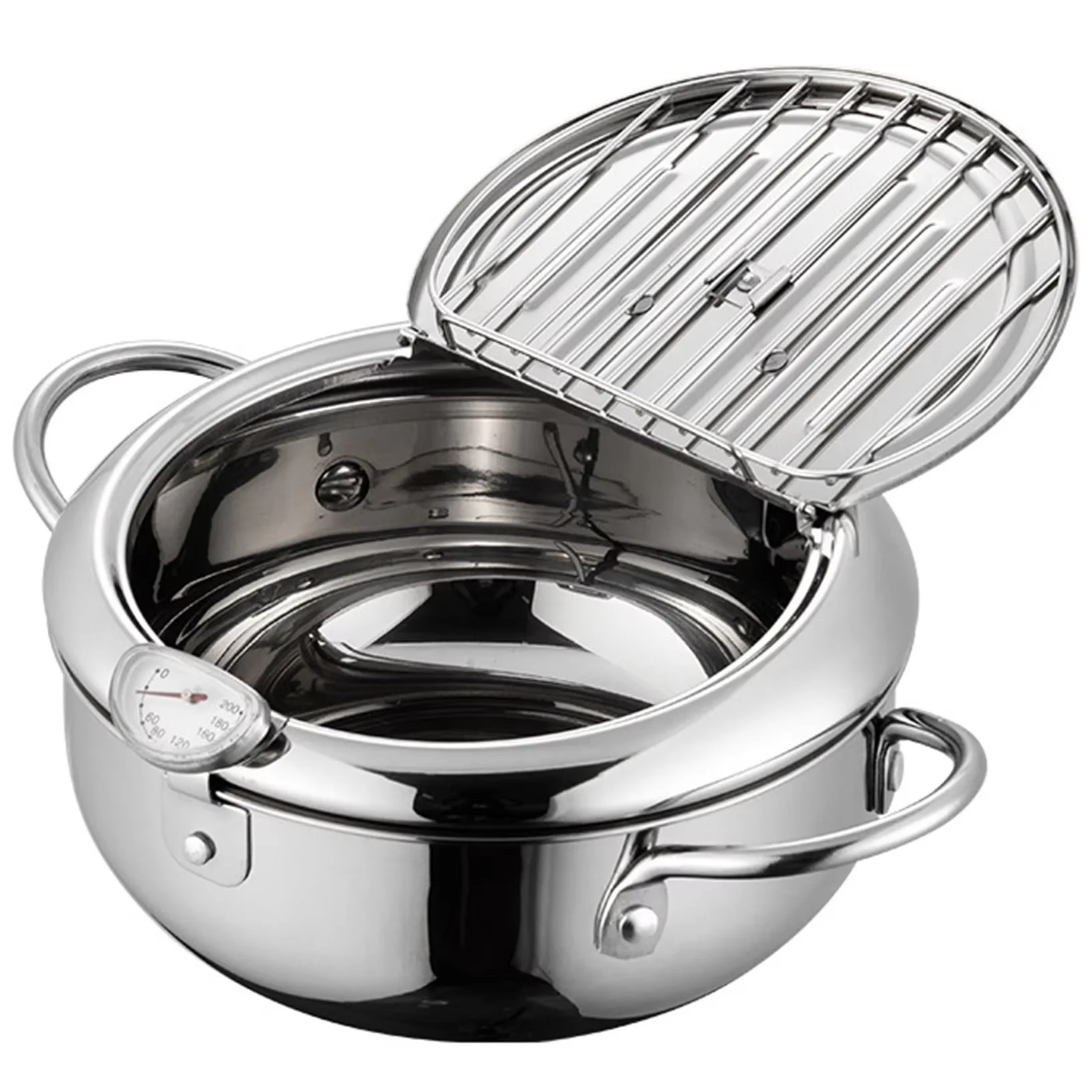 1-piece nerez ocel temura hluboká smažák s teploměr japanese-style domácí kuchyň smažák zahuštěný pro vaření