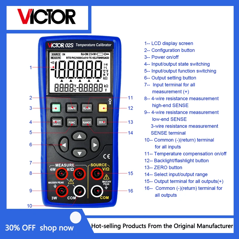 Vítěz 02s imput a výroba zdroj 8 typů z tepelný článek měření (R/S/K/E/J/T/B/N) tepelný článek calibrator