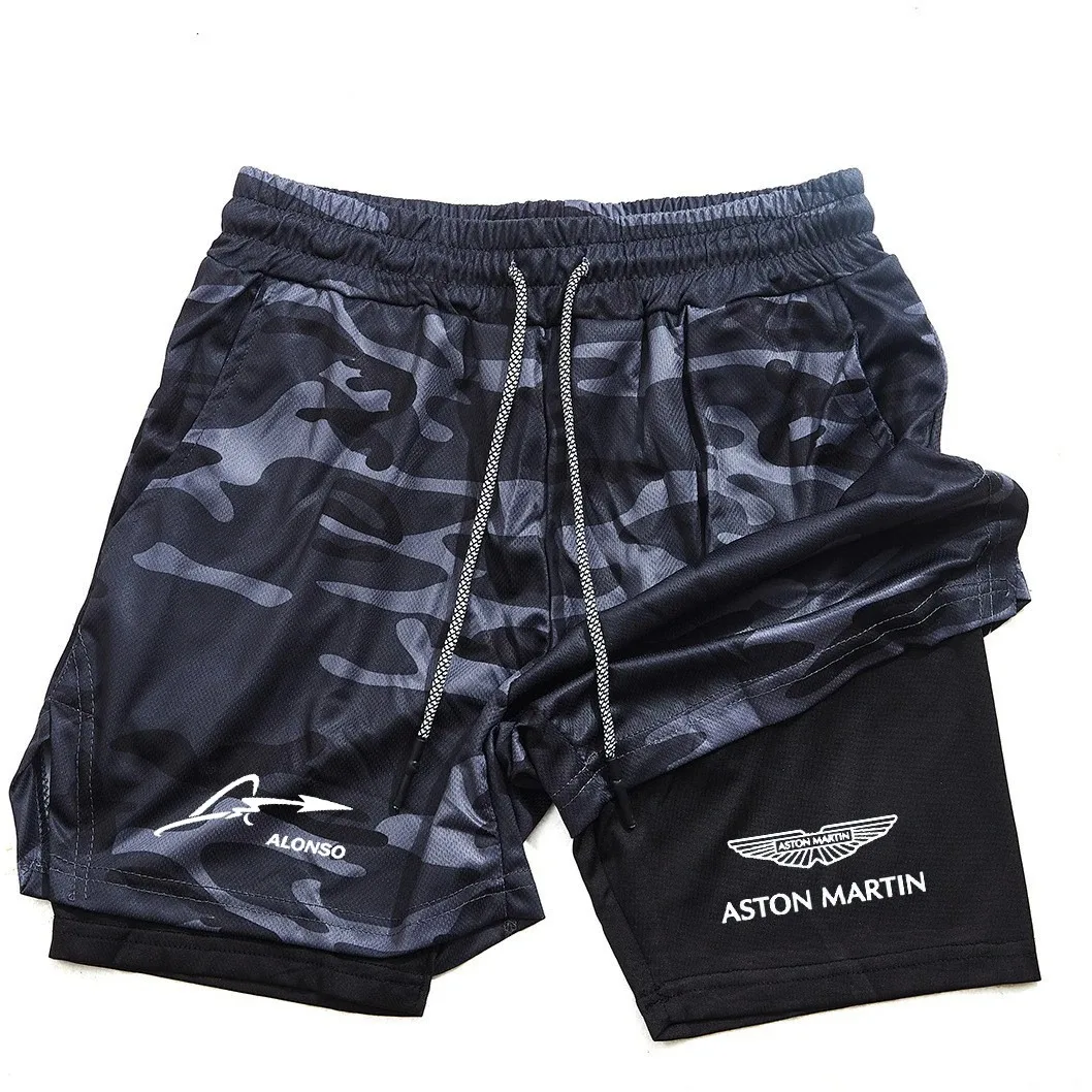 2026 aston Martin logem sport šortky 2-in-1 cvičení šortky dvojitá vrstva šortky kamufláž běžecký kalhot Martin rychle doprava