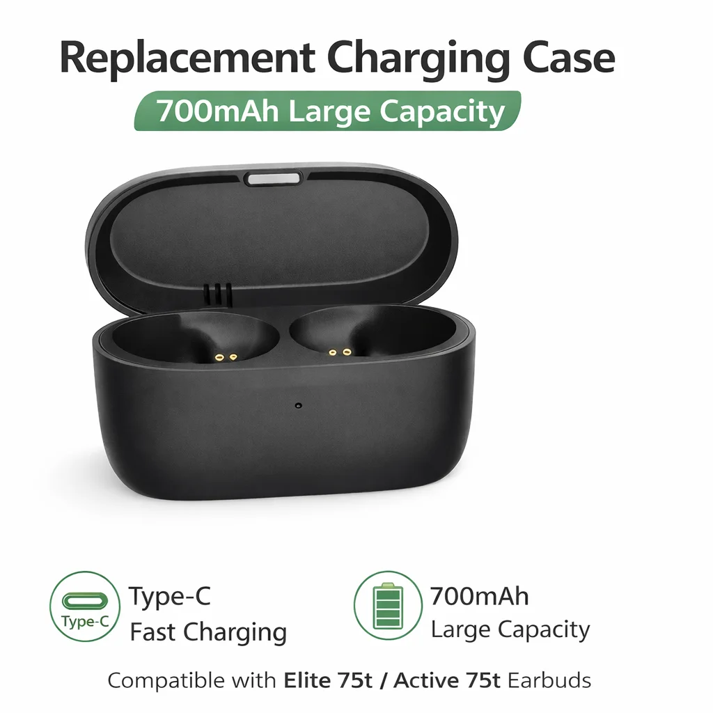 Náhrada nabíjení pouzdro 700mah velký schopnost type-c rychle nabíjení přenosné kompatibilní s elita 75t / aktivní 75t