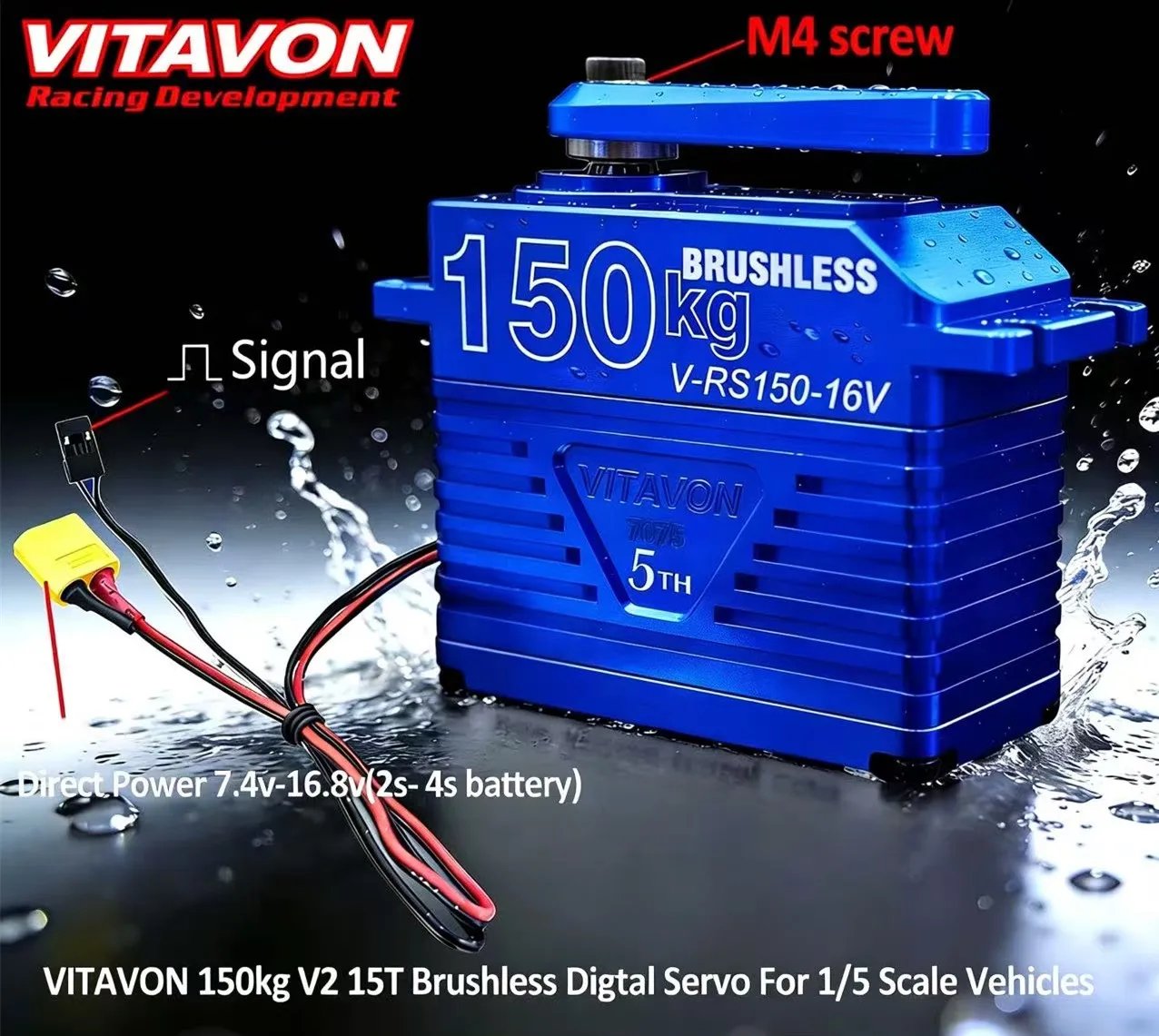VITAVON aluminium 7075 kov mechanismus vodotěsný bezuhlíkový servo 150kg 15T 180° pro 1/5 RC škála vozidel robot kříž RC emo losi 5T