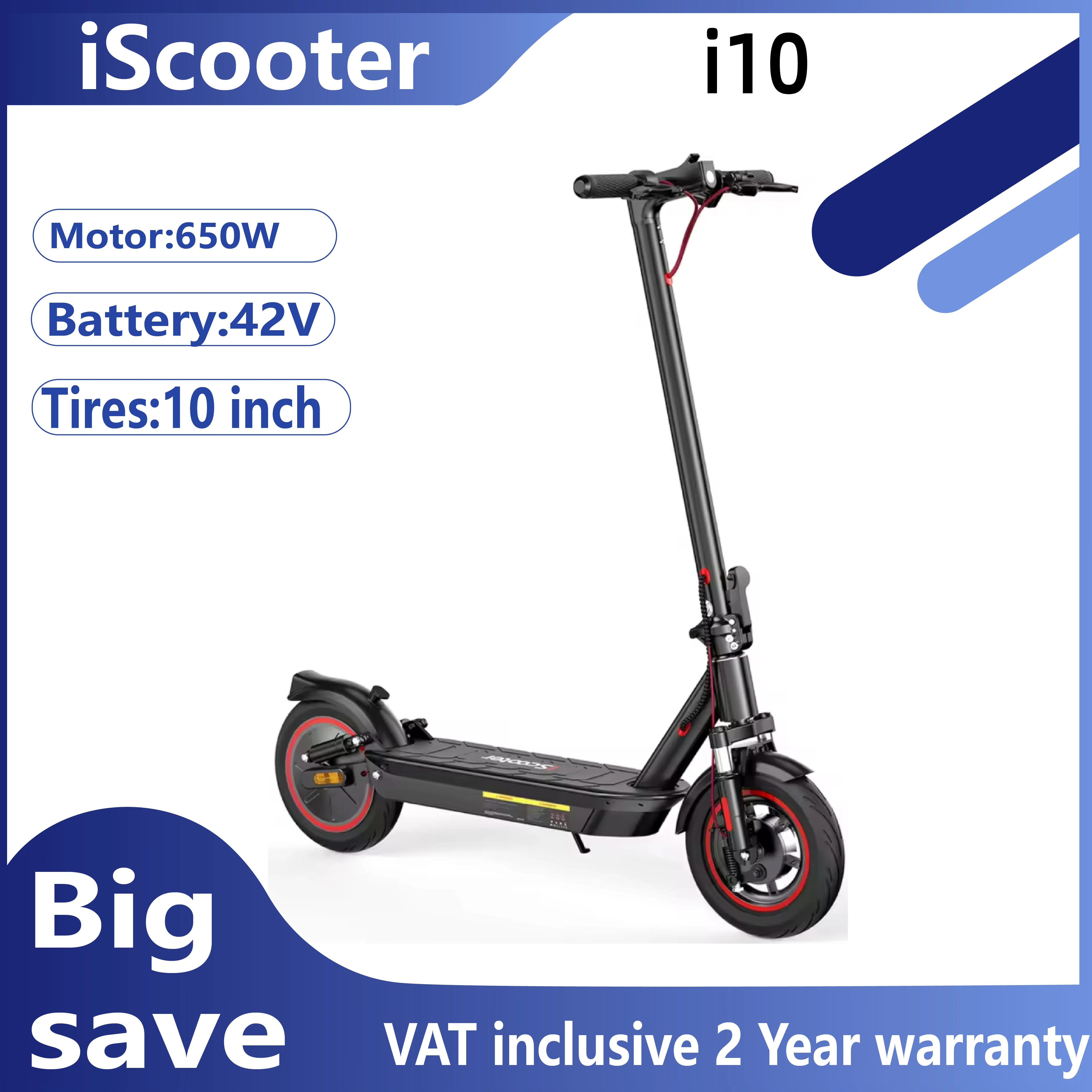 Iscooter i10 skládací náhrada modelka elektrický koloběžky pro dospělé 650w motorový 36v15ah 10uo palec pneumatické pneumatika