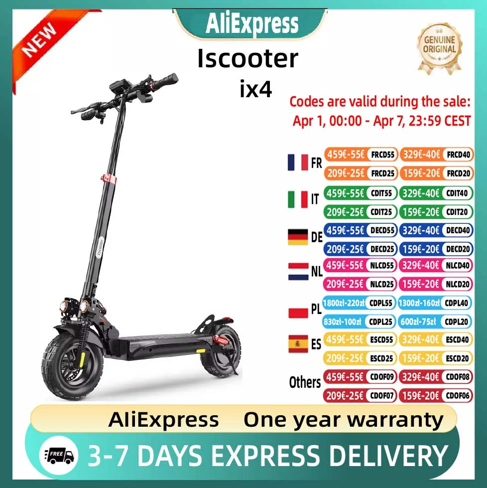 Iscooter ix4 elektrický koloběžka 800w motorový 48V 15ah 45km/h rychlost skládací off-road escooter s app