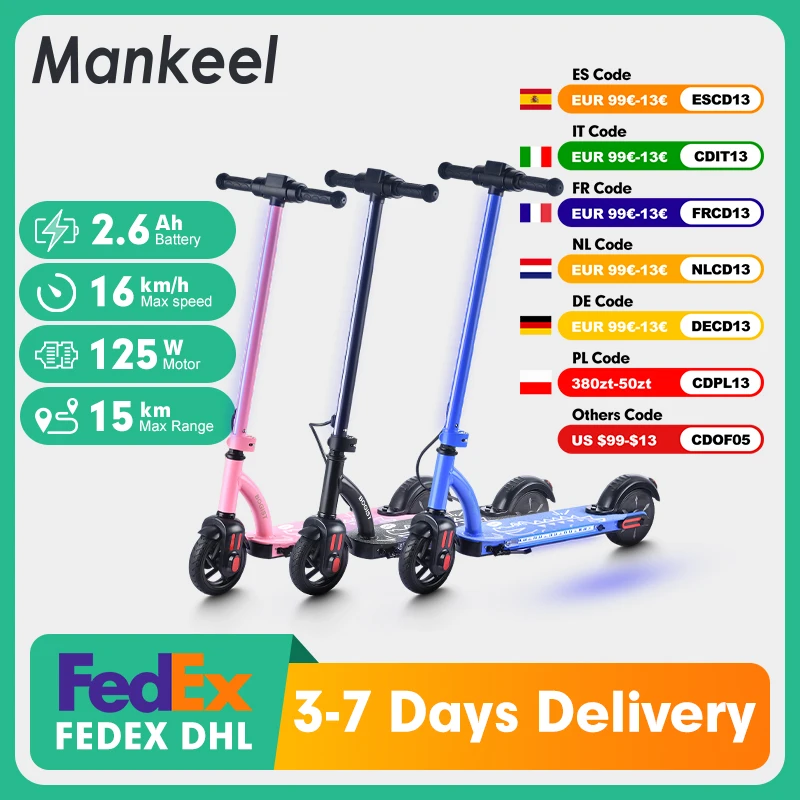 Mankeel E6 pro elektrický koloběžka pro děti stáří 6-12 125W motorový pestrý lehký 6" e-scooter s 24v 2.6ah baterie maxi 16km/h