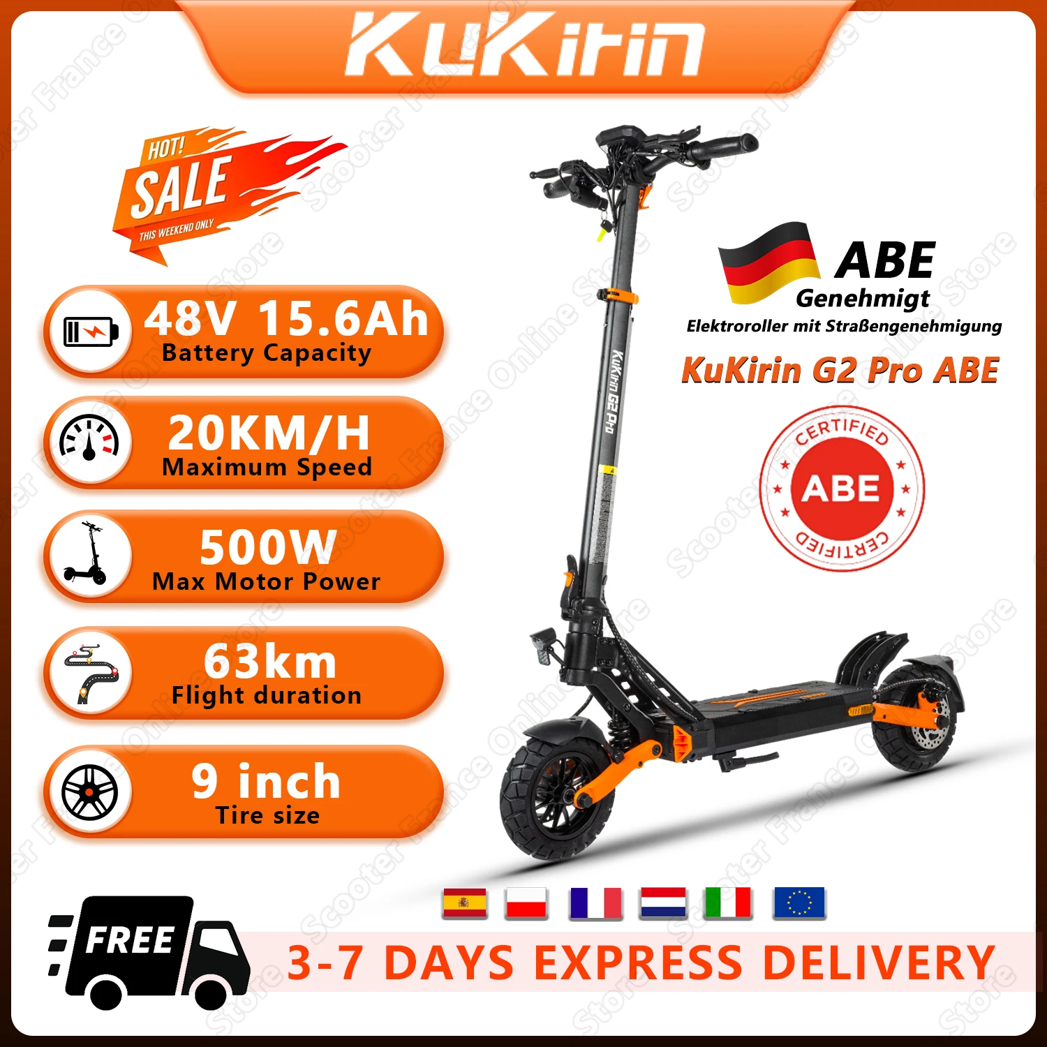 Kukirin G2 pro (ABE) elektrický koloběžka 500w motorový 48V 15.6ah baterie 9" pneumatika maxi rychlost 20km/h e-scooter s ABE certifikace