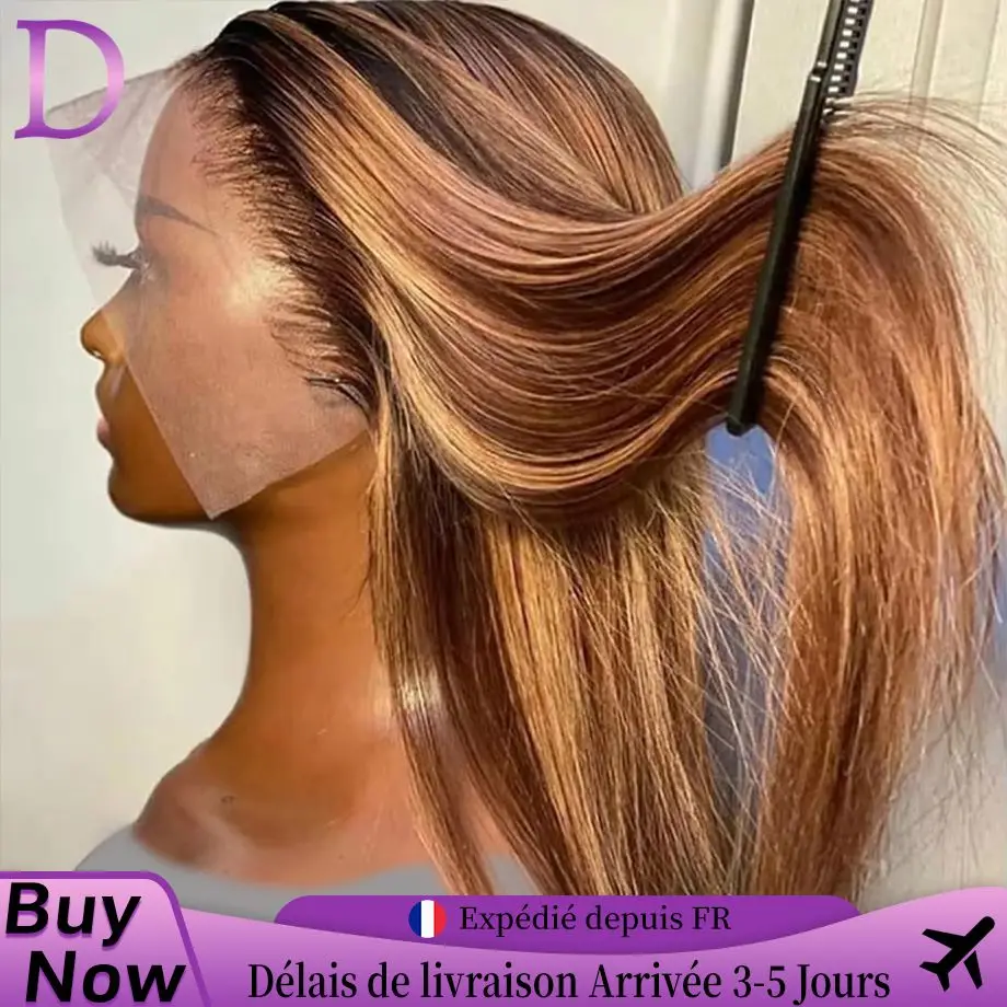 Dialola přímo 13X6 hd krajka čelní paruka vrcholem paruky člověk vlasy 13X4 krajka přední 4/27 blondýnka ombre hnědá paruka přímo člověk vlasy paruky