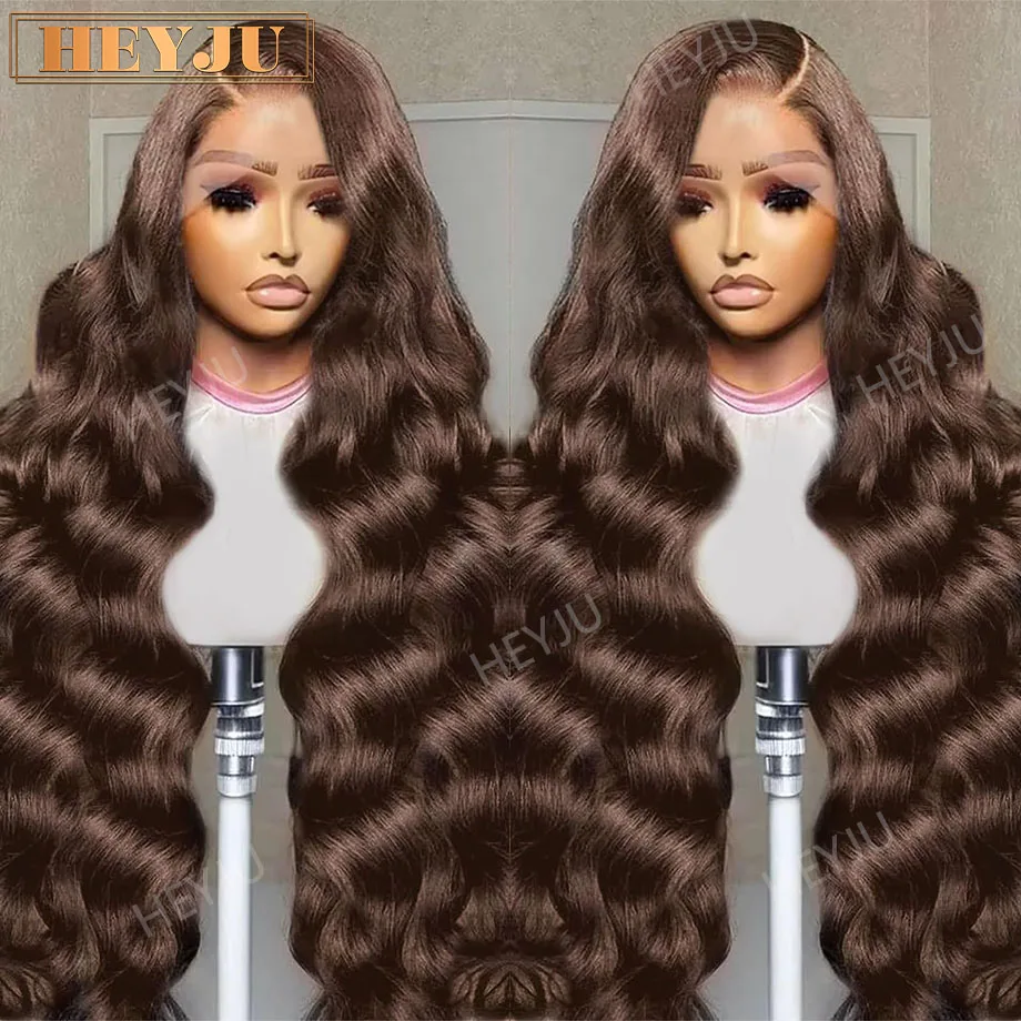 Tělo vlna čokoláda hnědá člověk vlasy krajka přední paruka barevný paruky člověk vlasy 13x6 čelní paruka 30 36 palec 13x4 hd průhledná paruka
