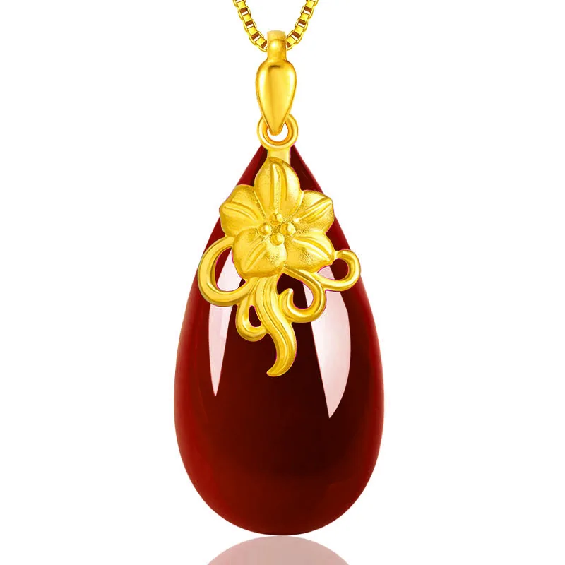 Nový elegantní high-end voda kapat vzhled hetian jaspis bílá jadeit -plated 24K zlato barva přívěsek řetízek pro ženy