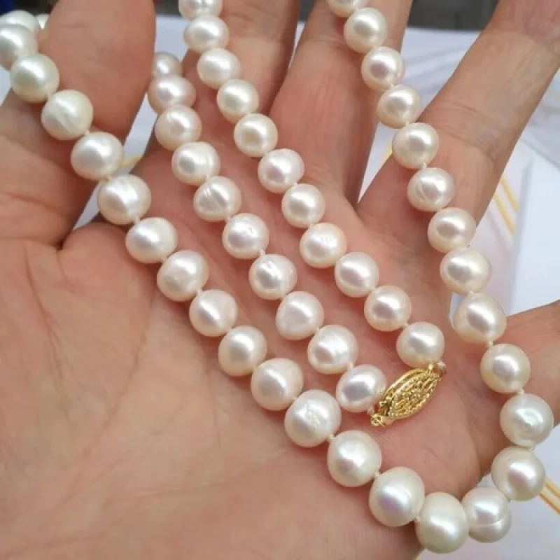 Dokonaný přírodní AAA 8-9mm bílá jih moře perla řetízek 18/36 palec 14K zlato