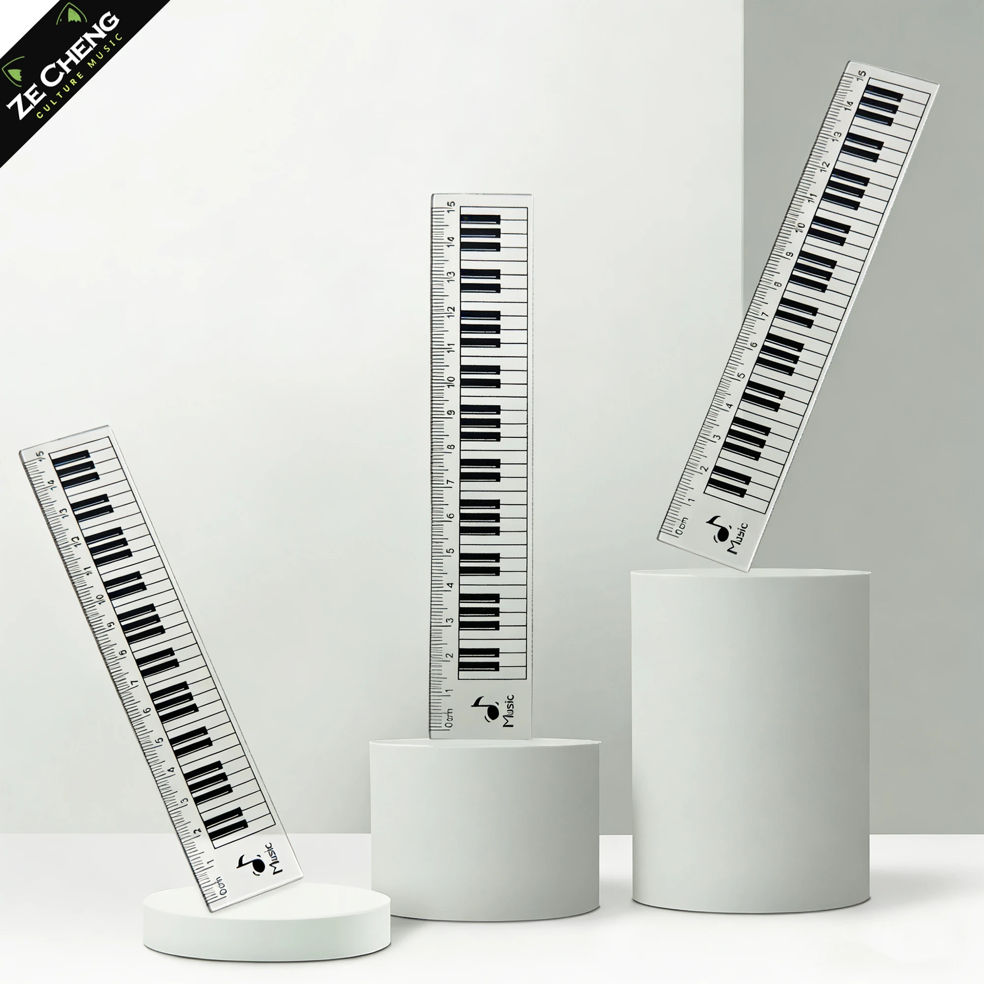 15cm průhledný svrchovaný 6-pack - klavír klávesnice a hudba nota design pro škola, úřad a inženýrství, víceúčelové měřicí nářadí