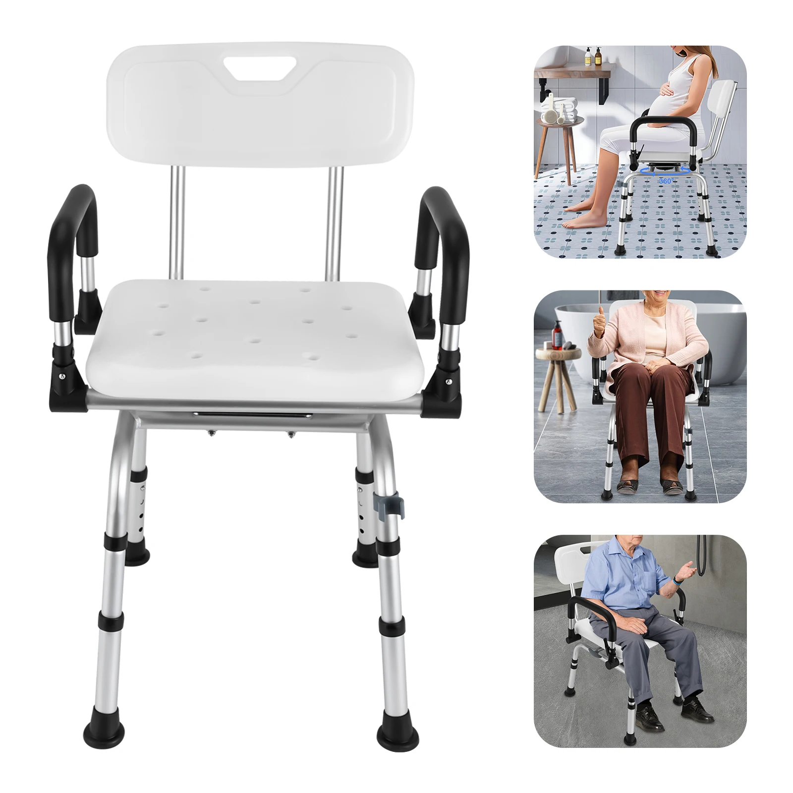 Výškou nastavitelný 360àƒâƒà‚â‚àƒâ‚à‚° rotujícího sprcha židle s armrests opěradlo 180kg nosné aluminium slitina floorstanding koupat stolice