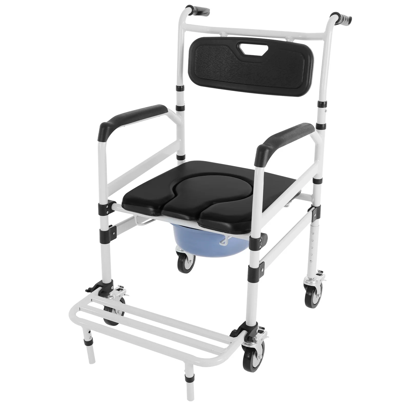 Nastavitelný výškou sprcha commode invalidní vozík s 4 brzda univerzální kol aluminium slitina u postele commode židle pro klozet 100kg