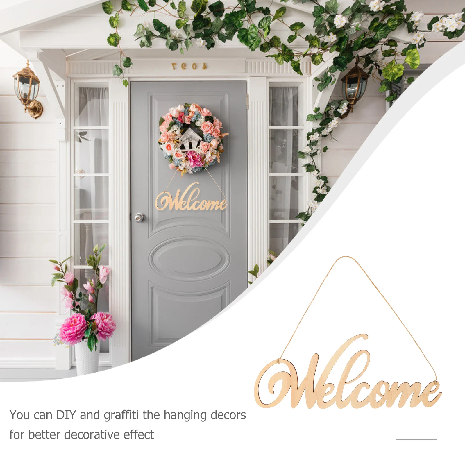 1ks simulované kvést dveře přívěsek rustikální věnec dřevěný vítejte deska domácí zeď závěsný dekorace svatební večírek adornment