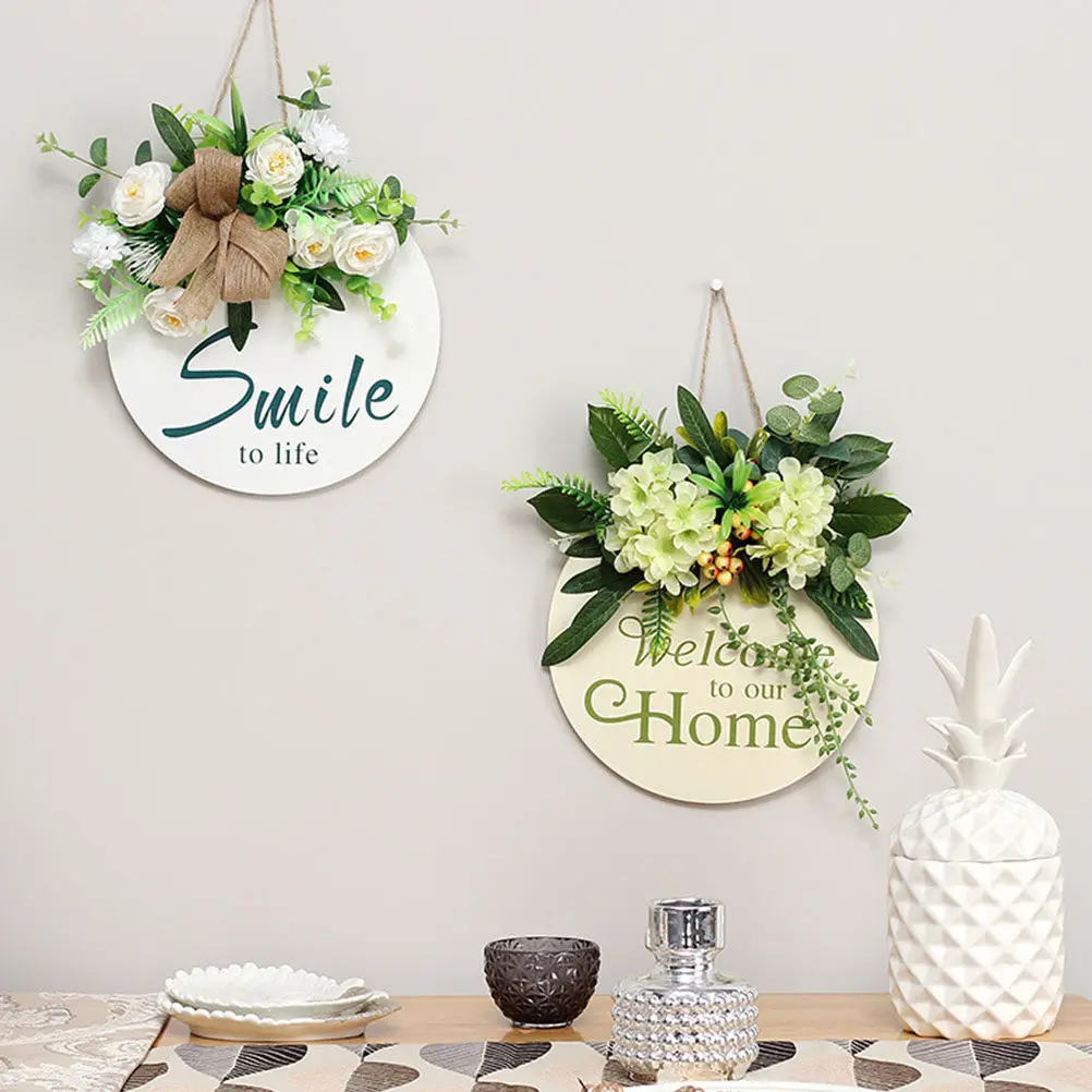 1ks simulované kvést dveře přívěsek rustikální dekorační věnec doorplate dřevěný zeď závěsný dekorace vítejte deska pro domácnost