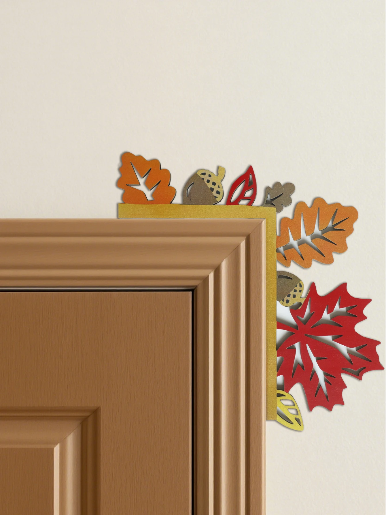 Podzim listech dveře natě dekorace, pestrý dřevěný kout dveře formulovat okrasa, sklizeň slavnost & thanksgiving den domácí dekorace