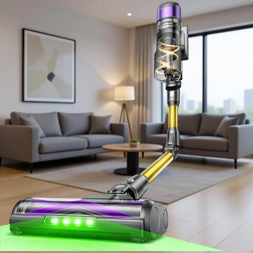 Ohýbatelné tyčinka vacuum čistič s 55kpa sání, 60min runtime, 600W energie, dotek senzor, anti-brush, greeneye lehký, self-stan