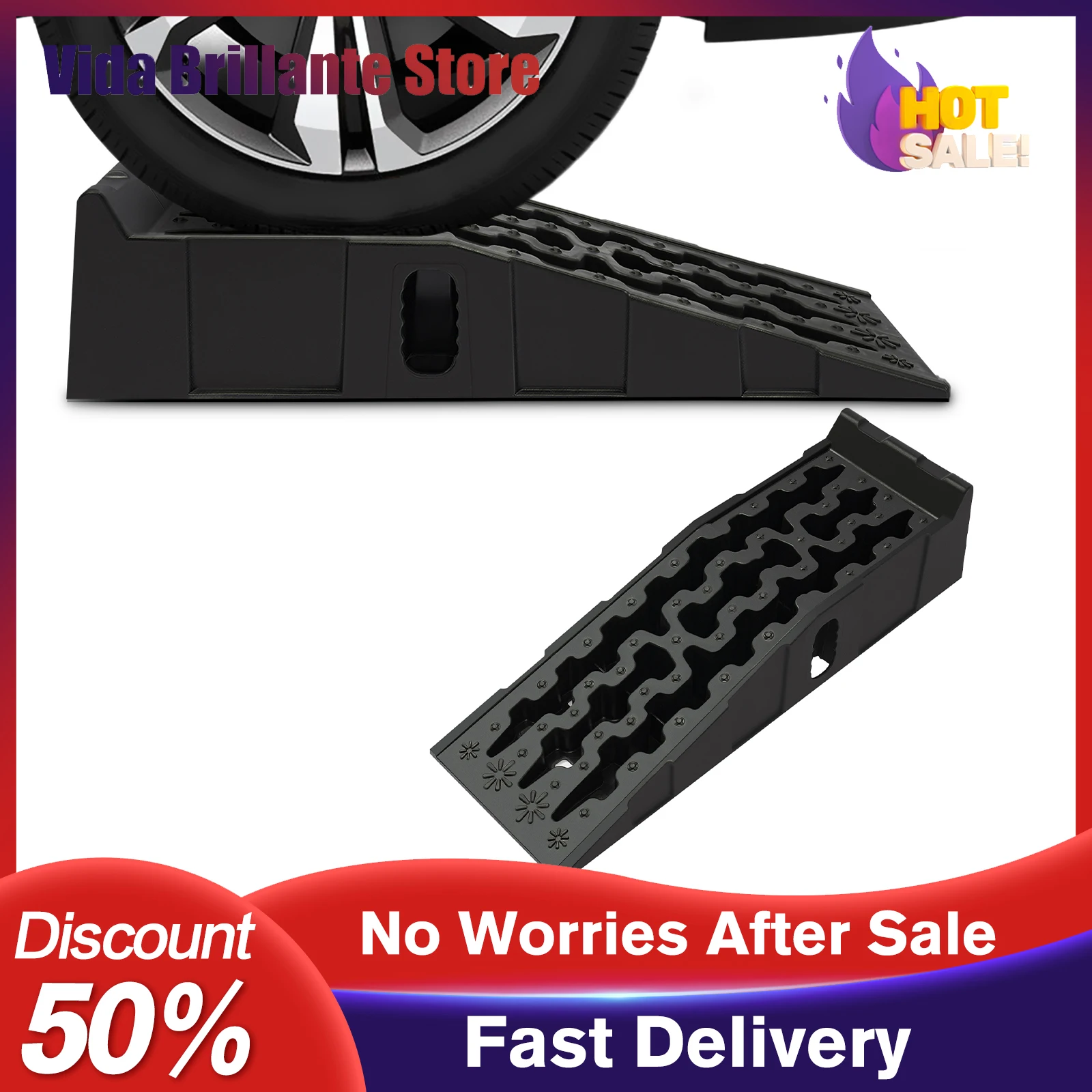 Heavy-duty 3T auto obsluha rampy (2PCS) - PP build&8.6° bezpečný naklonění, 70mm liftingový height&anti-slip design, odpovídat lehký vehicle/suv/car