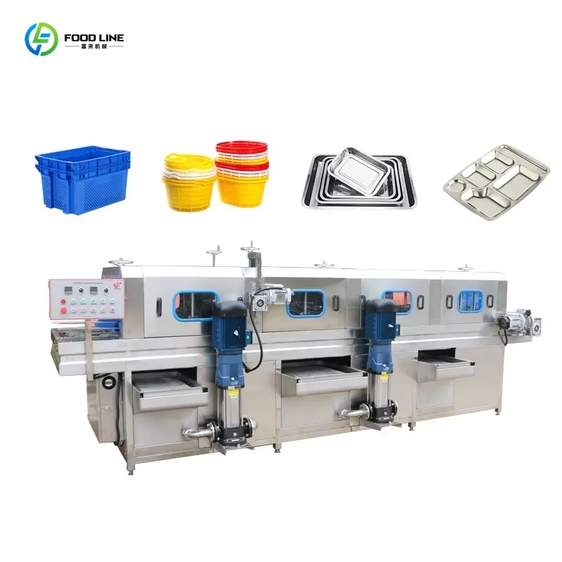 Přizpůsobené tunel typ mytí stroj plastový chléb dort bedna na láhve seafood bedna koš úklid aparatura