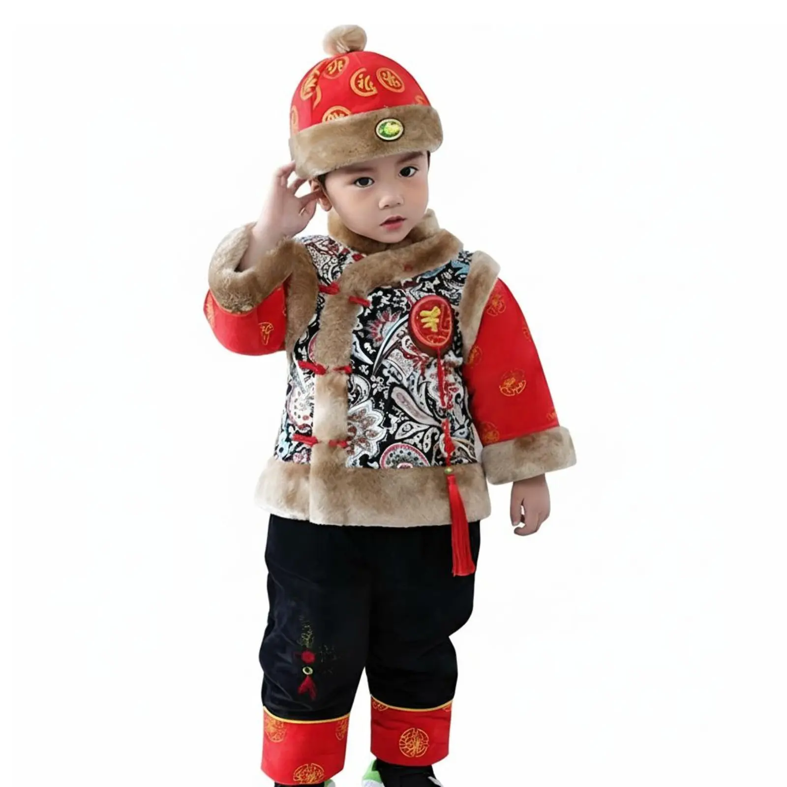 Chlapci Čínské tang oblek sada, zahuštěný, fénix výšivka, nový rok svátek oblečení