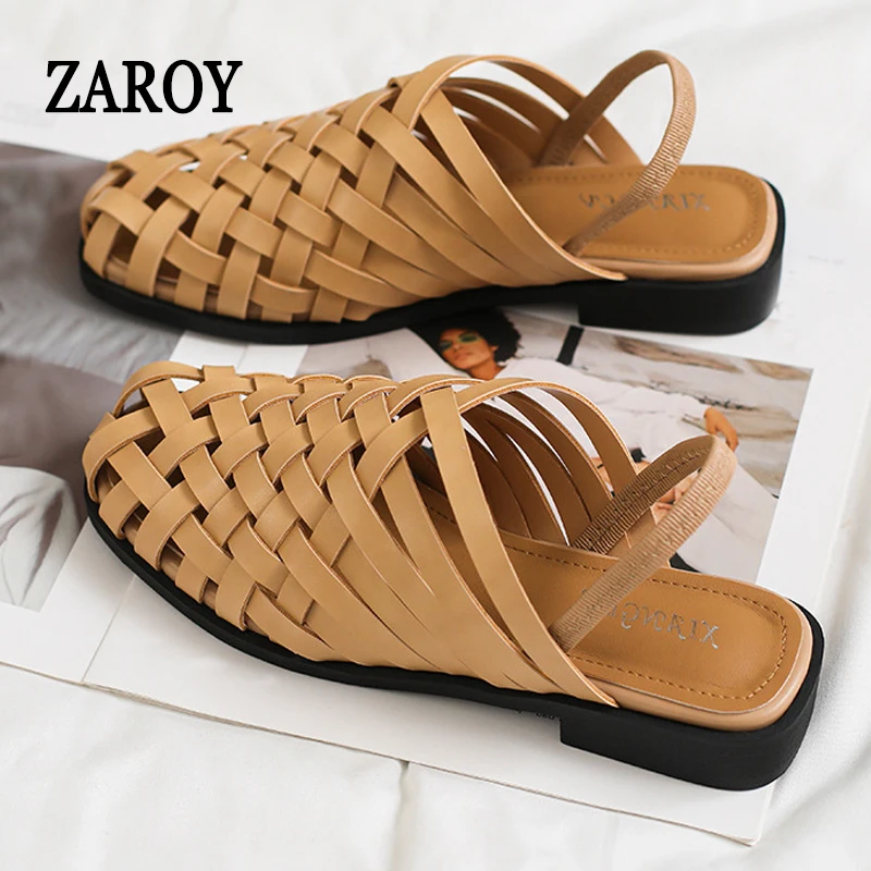 ZAROY móda tkát muly ženy sandály jaro léto zakrýt prst plochý bačkory kauzální navlékací prodyšné gladiator мюли
