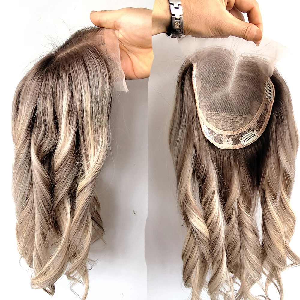 6x7 krajka člověk vlasy natě temný rooted blondýnka vlnitý natě s klipů, prodyšné krajka báze topologického prostoru příčesek pro vlasy ztráta řídnoucí vlasy