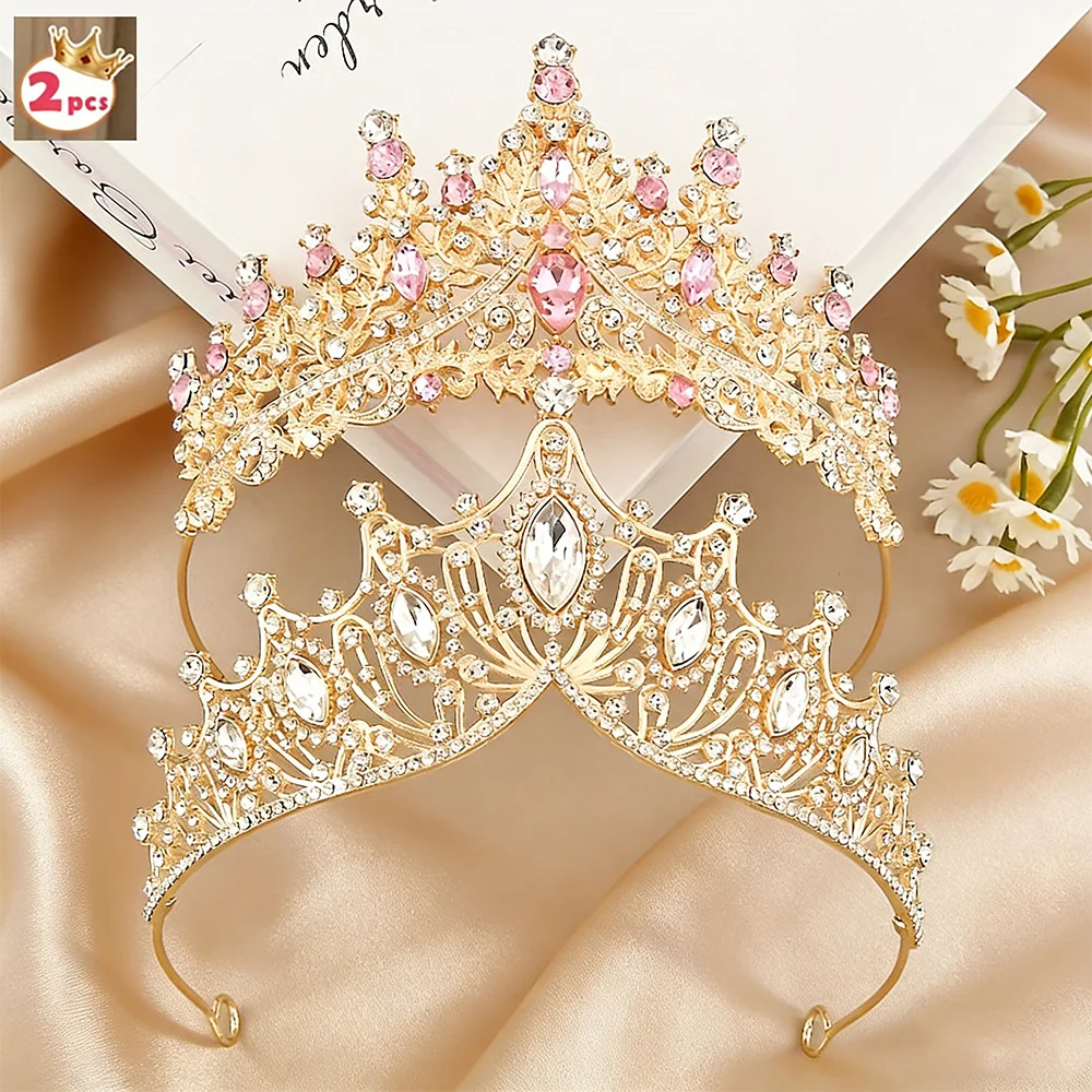 2ks vynikající vintage barokní zlato tiara sada růžová průhledný broušené sklo korun přepychový svatební headwear svatby proms quinceañeras