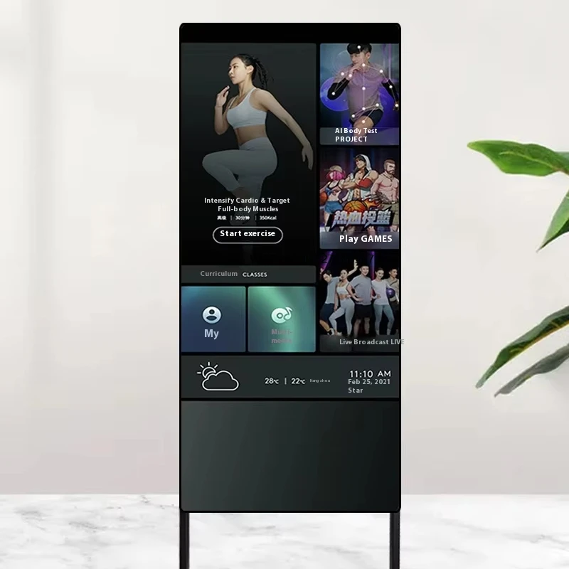 Chytrý fitka cvičení zrcadlo interaktivní podlaha stánek bilanční rok svislý dotek obrazovka OLED hlas ovládání 1080p fitness chytrý
