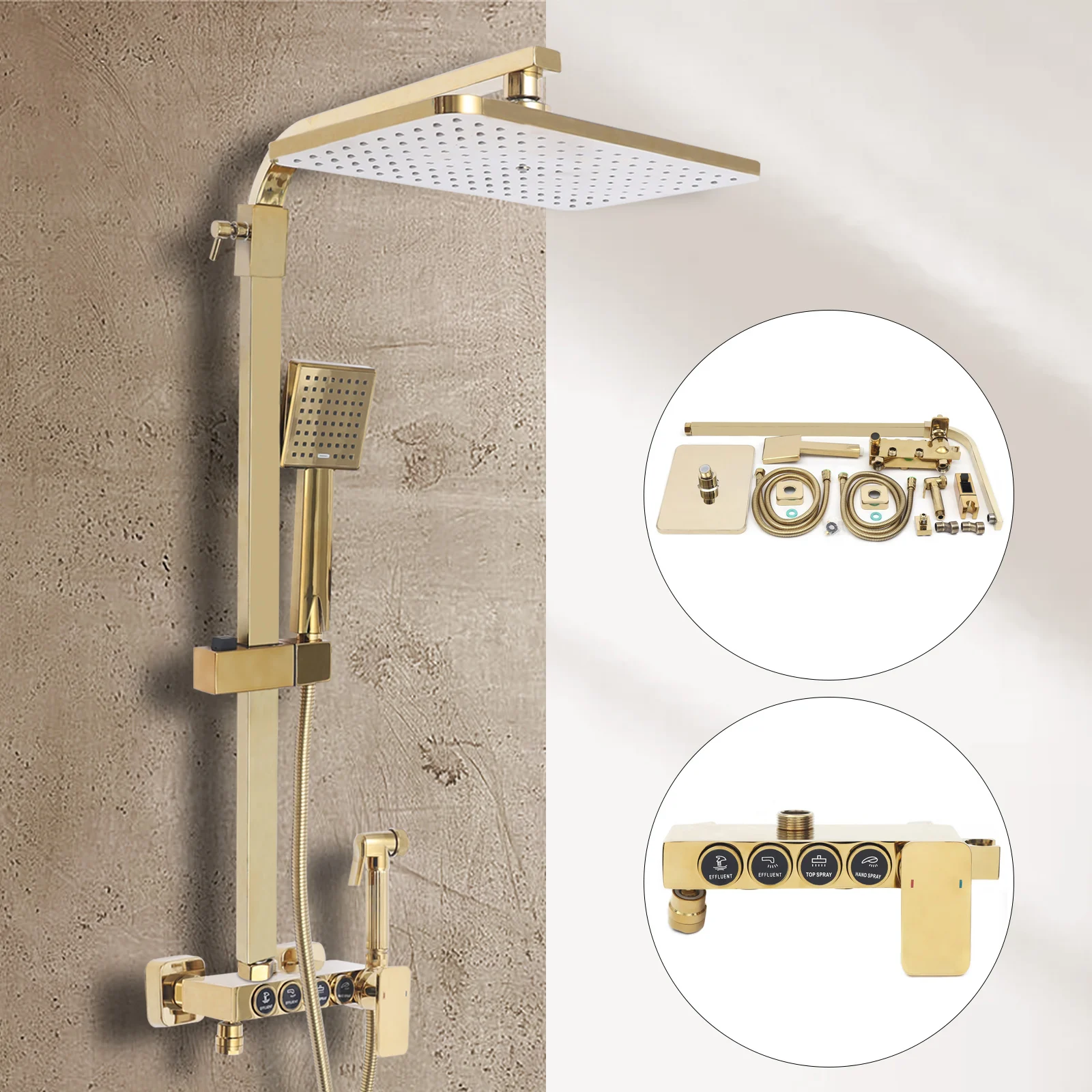 Srážky džber sprcha pípa sada koupelna sprcha systém zeď namontovat čtverec vysoký měrný tlak sprcha svítidla
