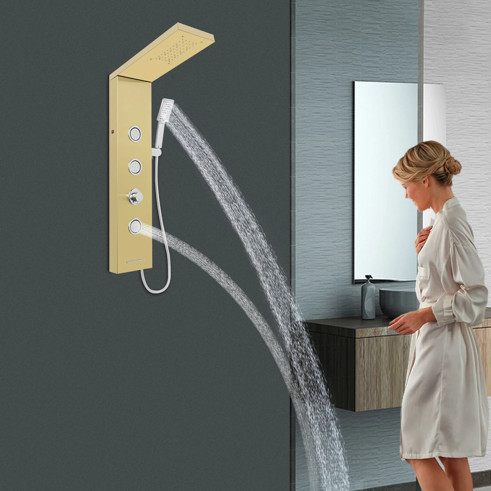 Koupelna pípa kartáčovaný zlato sprcha směšovače zeď montuje 3čepel funkce srážky rozprašovací sprcha hlava s ruka horké chladný voda sprcha sada
