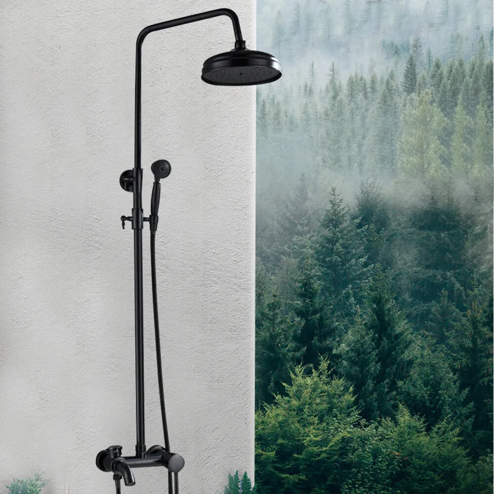 Schwarzes duschset (regenduschkopf + handdusche + wasserhahn) aus premium-stahl+messing (spritzlackierung), verschleißfest