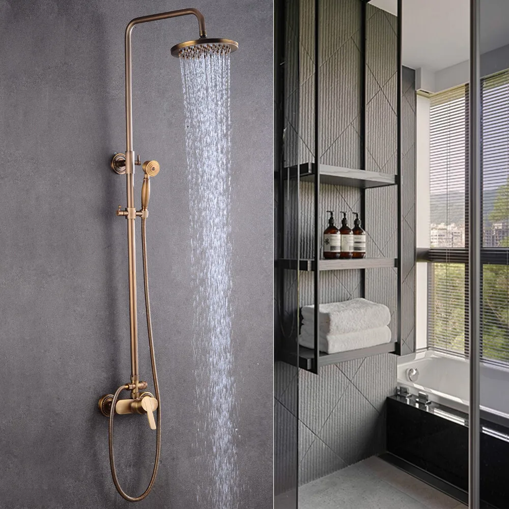 Goldenes retro-duschset aus kupfer+rostfreiem stahl, zwei sprühmodi – 360°-drehung der kopfbrause, gesamthöhe 128cm/50, 39in