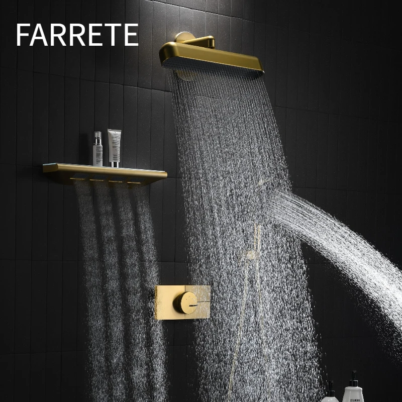 FARRETE high-end all-copper skrytý termostatická sprcha hlava, kartáčovaný zlato úložný, pressure-increasing knoflík sprcha hlava sada