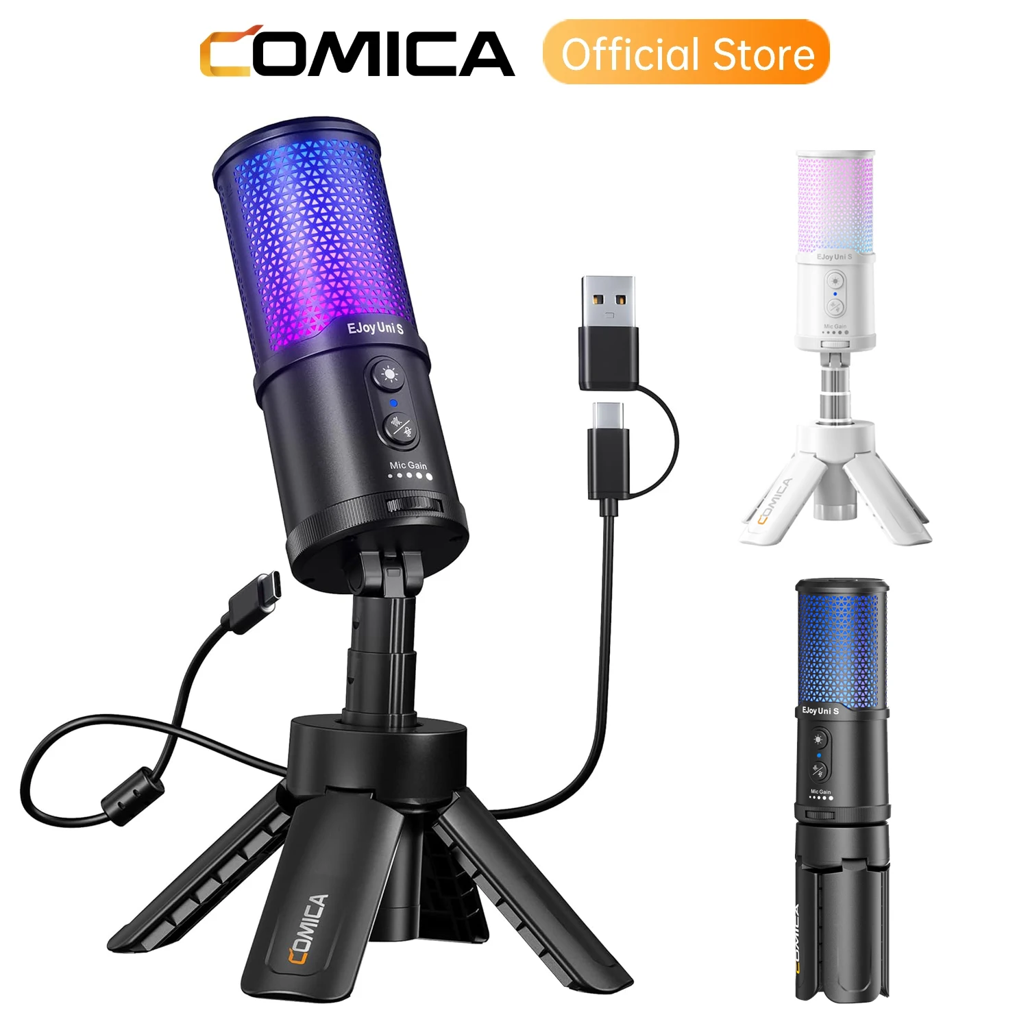 COMICA RGB herní USB kondenzátorový mikrofon s stativ stánek, denoise, pro nahrávka, podcasting, povídat si, youtube, PC, pš™à­stup ejoy UNI S