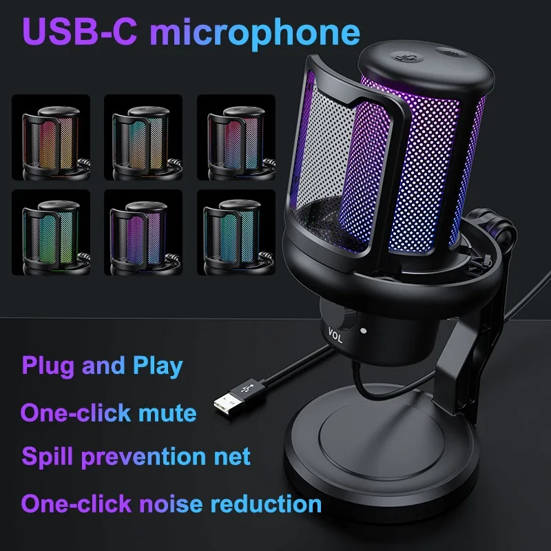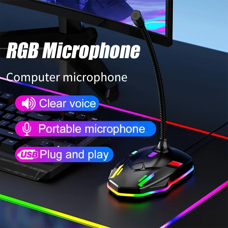 Přenosné USB RGB herní psací stůl mikrofon kolíček a divadelní hra, s LED lehký němý function1.5m kabel délka herní mikrofon pro domácí