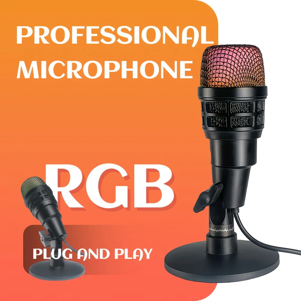 Mini USB kondenzátorový mikrofon RGB hluk redukce pro bydlet streaming herní karaoke video conferencing PC