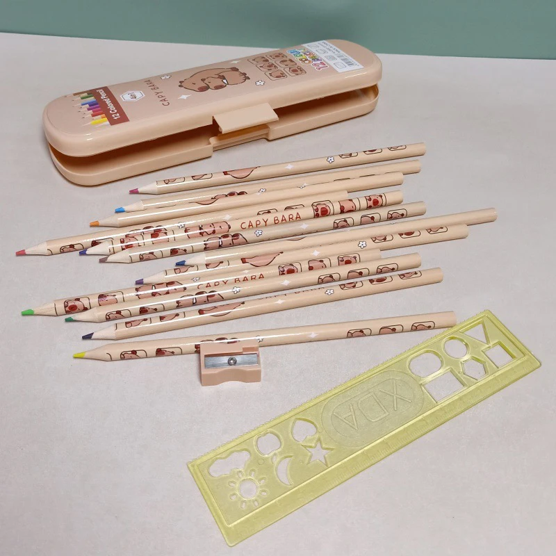 Dřevěný barevný tužka sada s kapybara design, zahrnuje svrchovaný a ořezávátko, dokonaný pro děti
