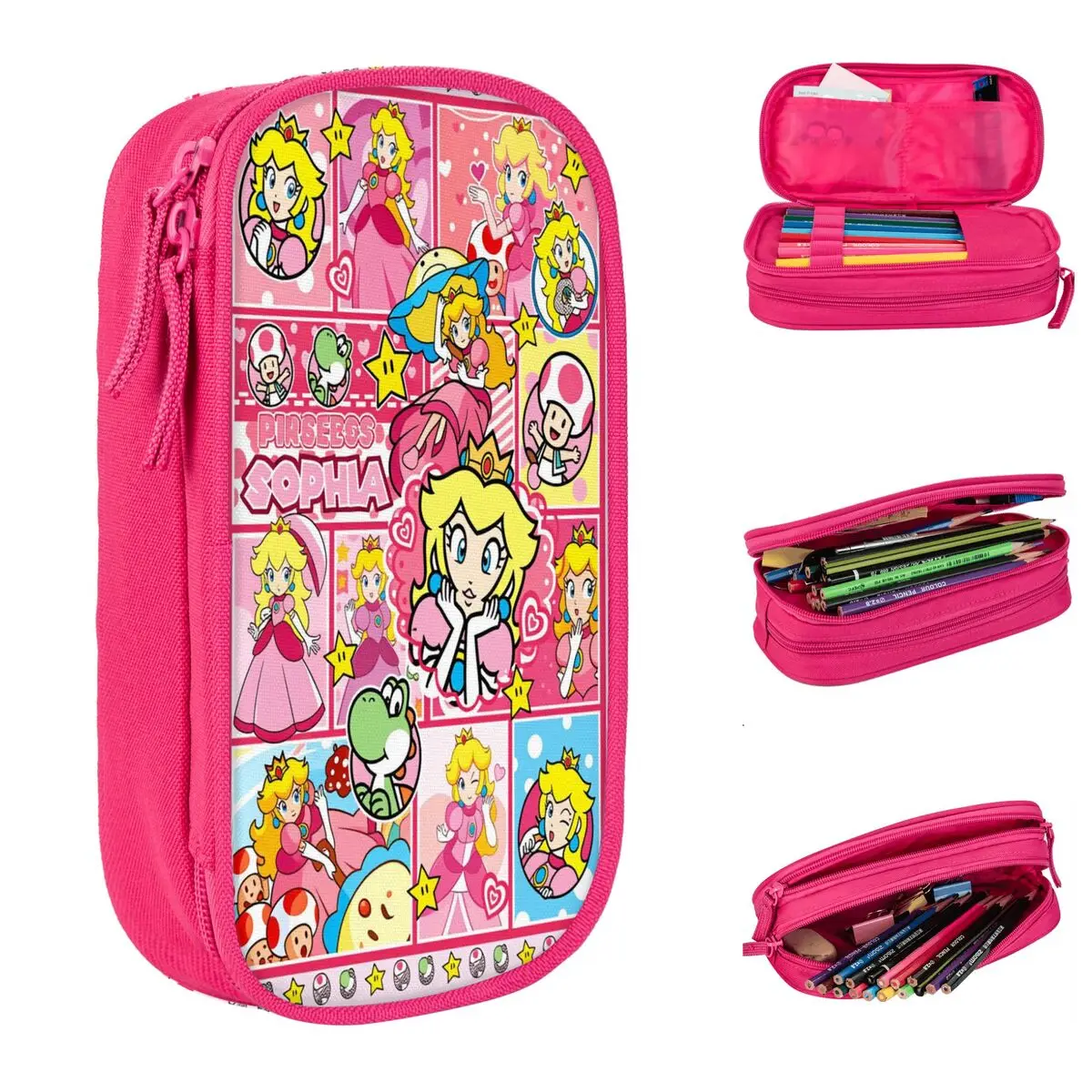 Kněžna broskev roztomilá hra tužka pouzdro kreslený růžová pero držák brašna dívčí chlapci velký úložný škola zásoby dárky pencilcases
