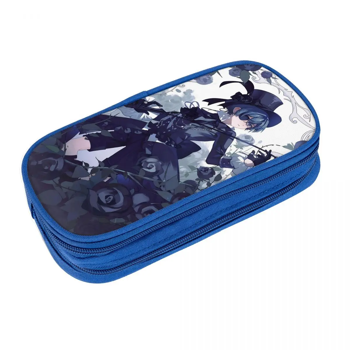 Černá butler anime tužka pouzdro požitek pero brašna pro student velký úložný úřad na zip tužka skříňka