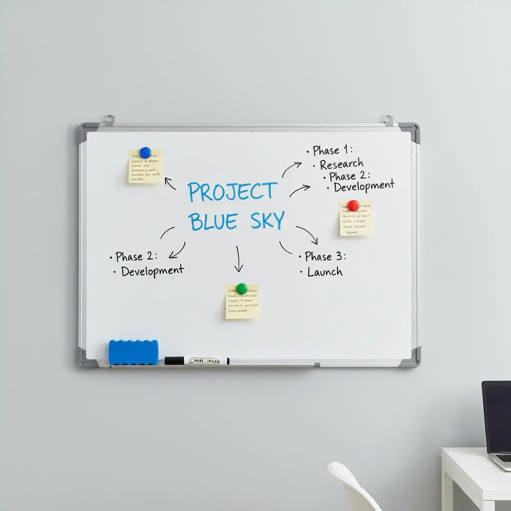 60x45 cm magnetický suchý erase deska – fixy, mazací guma, magnety, wall-mount & easel stánek v ceně