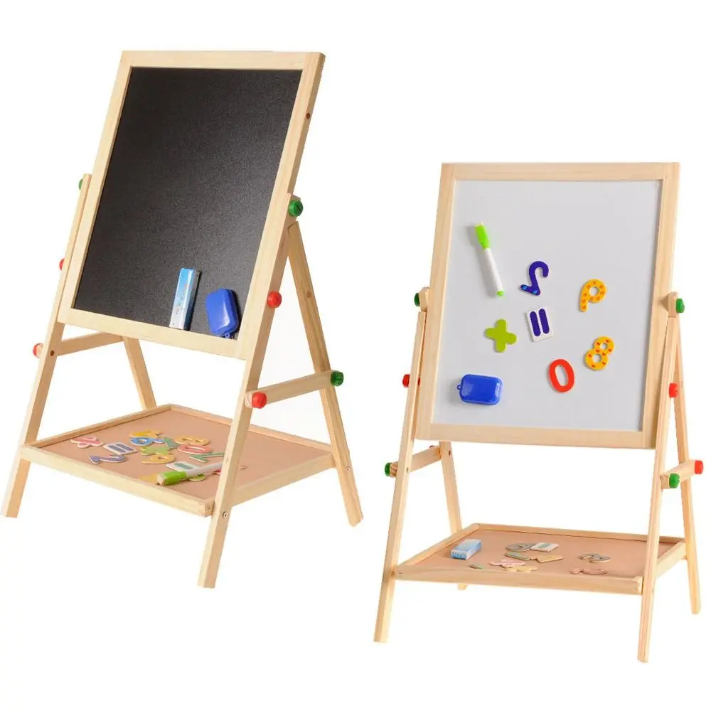Dřevěný 2v1 kresba deska kreativní multifunkční dvojitý strana tabule stánek styl závěsný tabule děťátko psaní