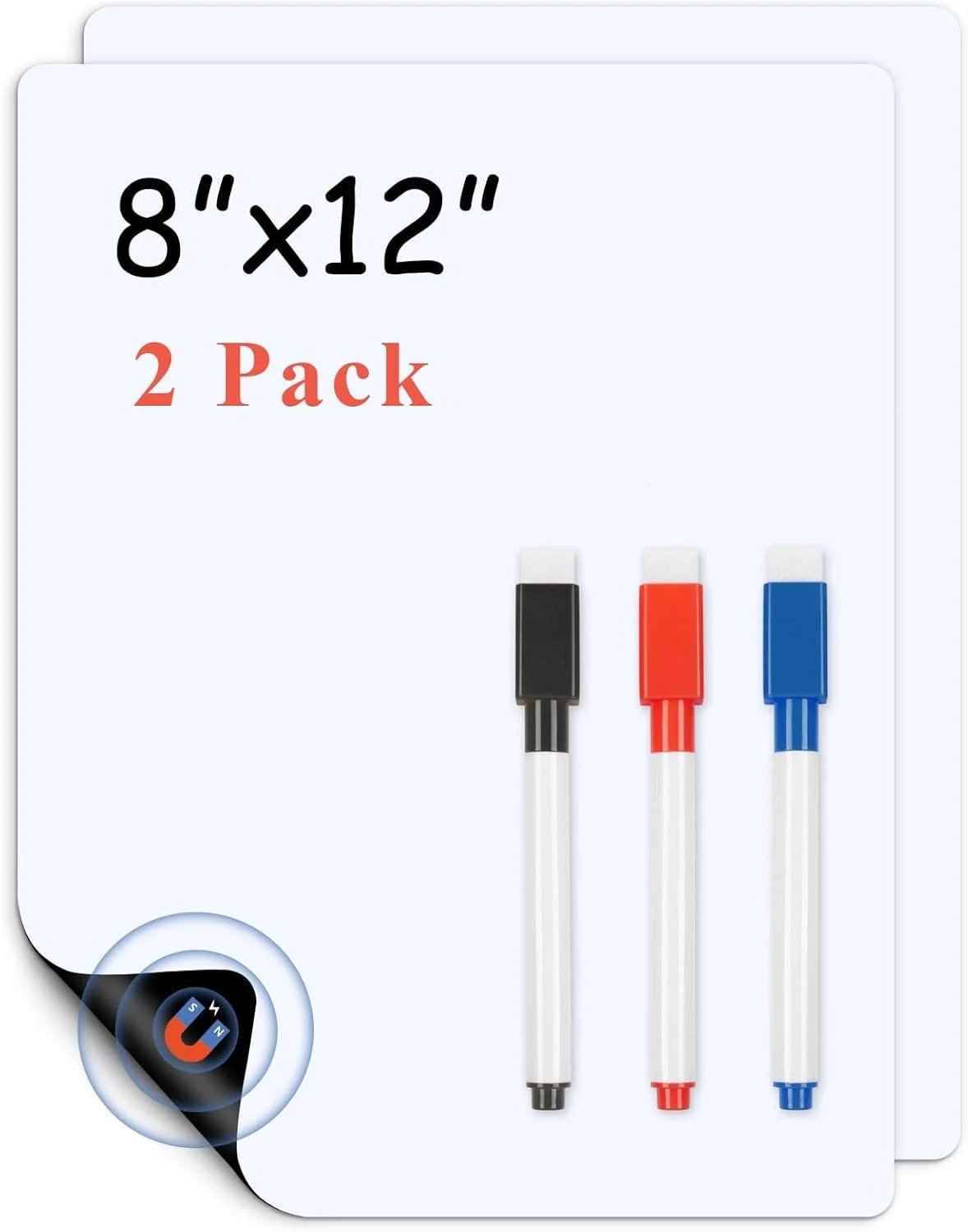 Magnetický chladnička bílá deska papír, 8" x 12" 2se pack malý suchý erase deska zahrnuje fixy