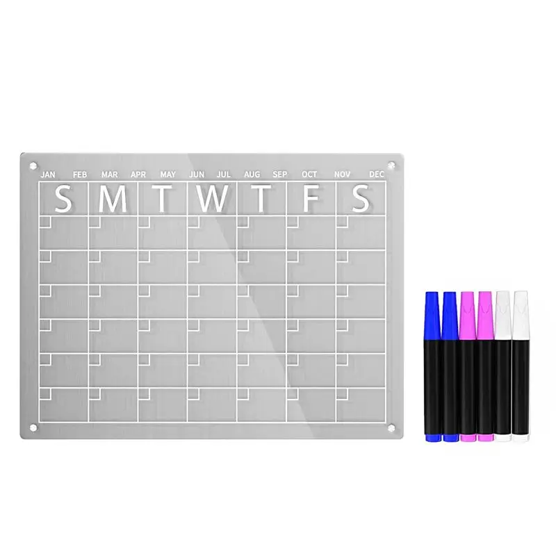 A14E-1 sada akryl suchý erase deska pro chladnička, 16X12 palce průhledný suchý erase kalendář zahrnuje 6pro fixy
