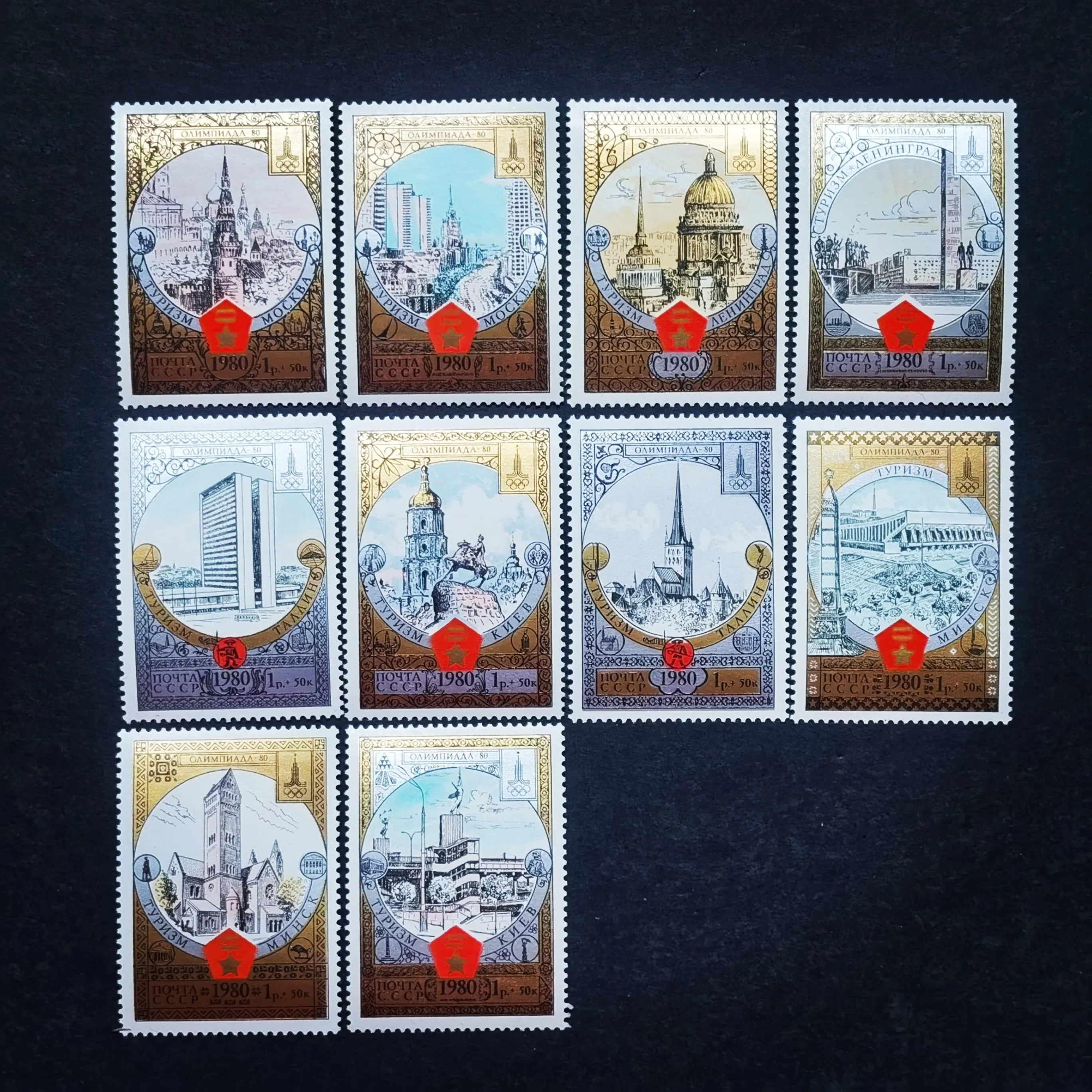 10pcs/set nový sssr cccp runout náznak 1980 moskva, A zlatý prsten turista města poštovné razítka MNH
