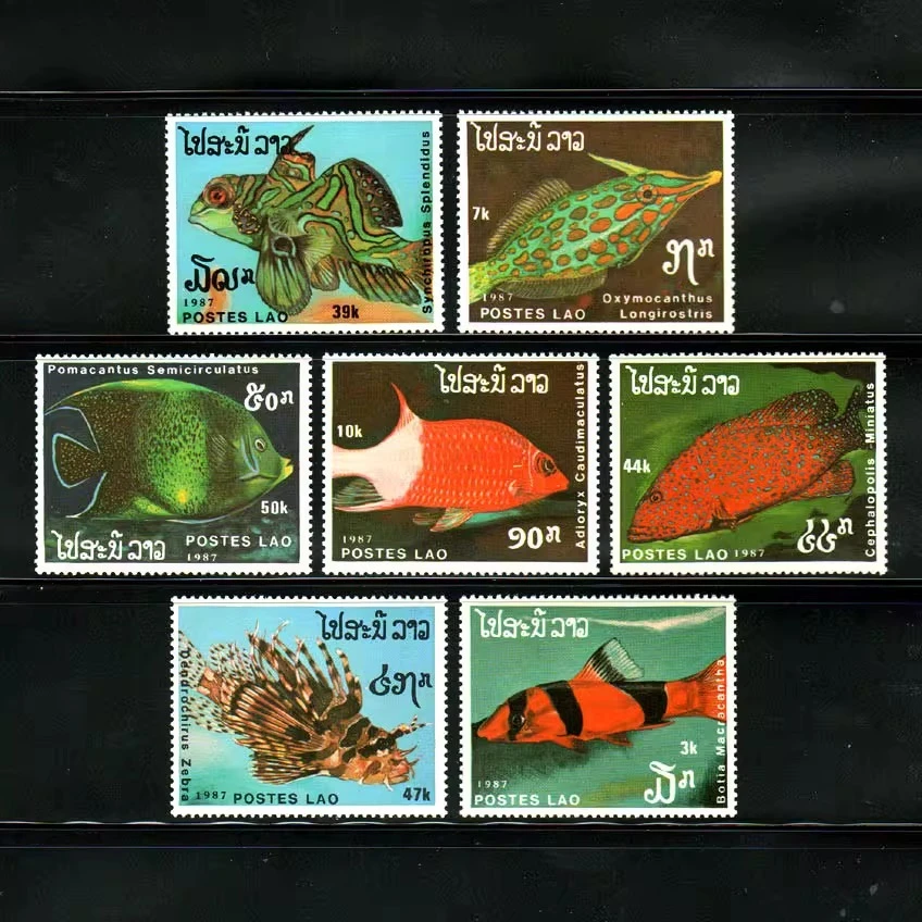 7pcs/set nový laos runout náznak 1987 tropické ryba ornamental ryba poštovné razítka MNH