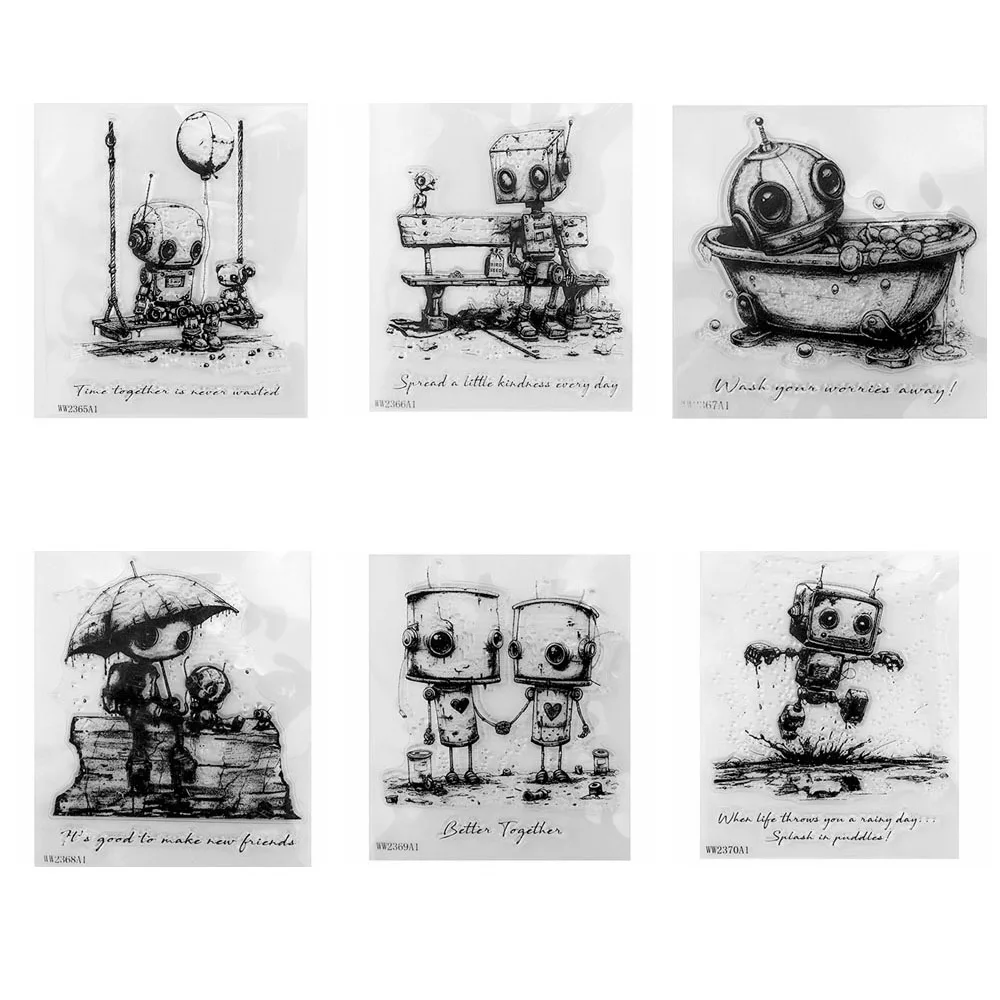 Bot-ology lépe dohromady průhledný razítka pro karta vytváření průhledná silikon razítka robot guma razítka pečeť pro DIY šrot