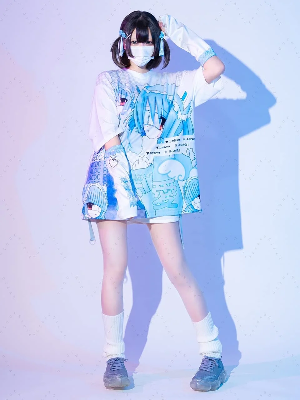 Horké láska svět kuma 01 tričko krátký rukáv acdc cár harajuku móda ženy muži netpunk choroba roztomilá bílá pastelové modrá móda