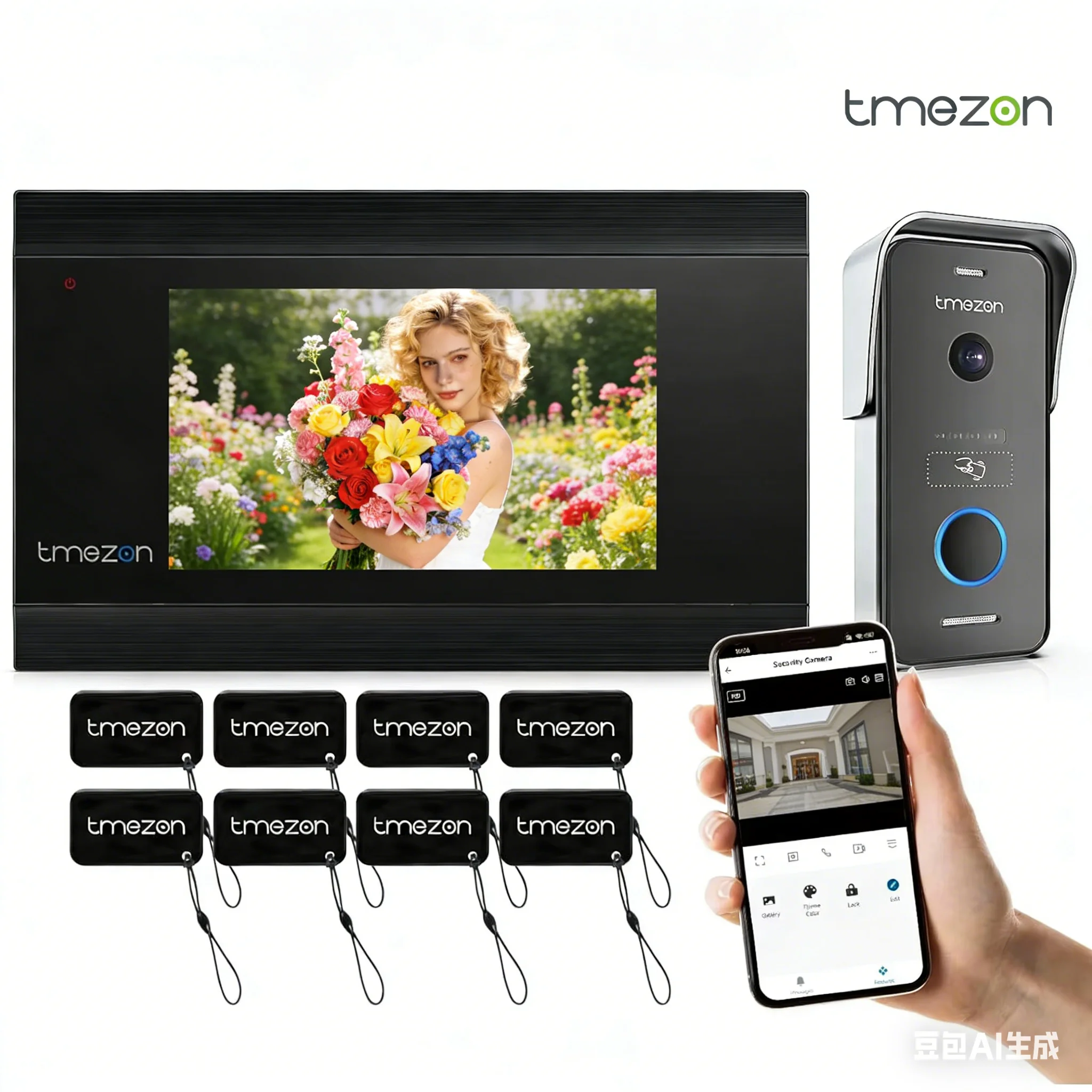 2-wire TMEZON WIFI video doorphone doorbell interkom 7 palec 1080P doteková obrazovka monitor app/swipe/card 4v1 odemknout tuya app